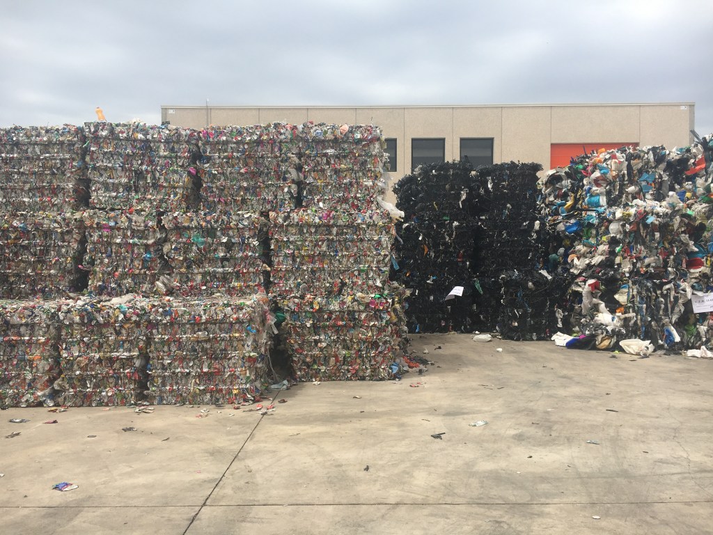 Below is a picture of piles of plastic that had been sorted by color/material. The structure above had workers who were manually removing incorrect materials as they came across a pretty fast-moving conveyor belt.
