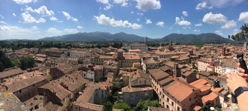 So after Florence, we went to Lucca which is a small medieval town. It’s completely surrounded by a wall. It was nice because it was much less crowded than Florence and Rome. We walked around and saw the church pictured above. We went to a town square that was the shape of an oval because there used to be an amphitheater there.