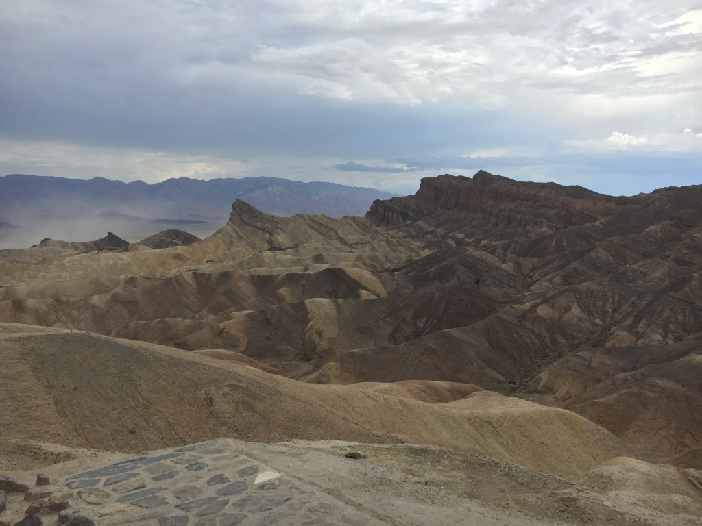 We grabbed lunch at a nearby hotel and headed to our last stop in Death Valley: Zabriskie Point. At this point the thunderstorm we drove through earlier was moving in and Zebraskie Point was insanely windy. Like pushes you over windy. This point was one of the most beautiful things I’ve seen in my life.