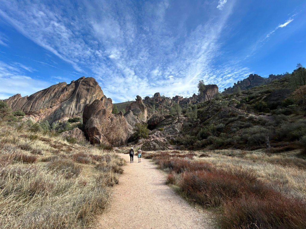 After Christmas we drove down to Morro Bay and stopped at Pinnacles National Park along the way. Pinnacles is known for it’s cool rock formations and caves. We went to the west side of the park (it has an east and a west side that are not connected) so we could do a hike called the Balconies Caves and Balconies Cliffs trail. There are two hikes through caves at Pinnacles and I chose this one because it’s more rugged and involves climbing over rocks–the other one is easier and has stairs.