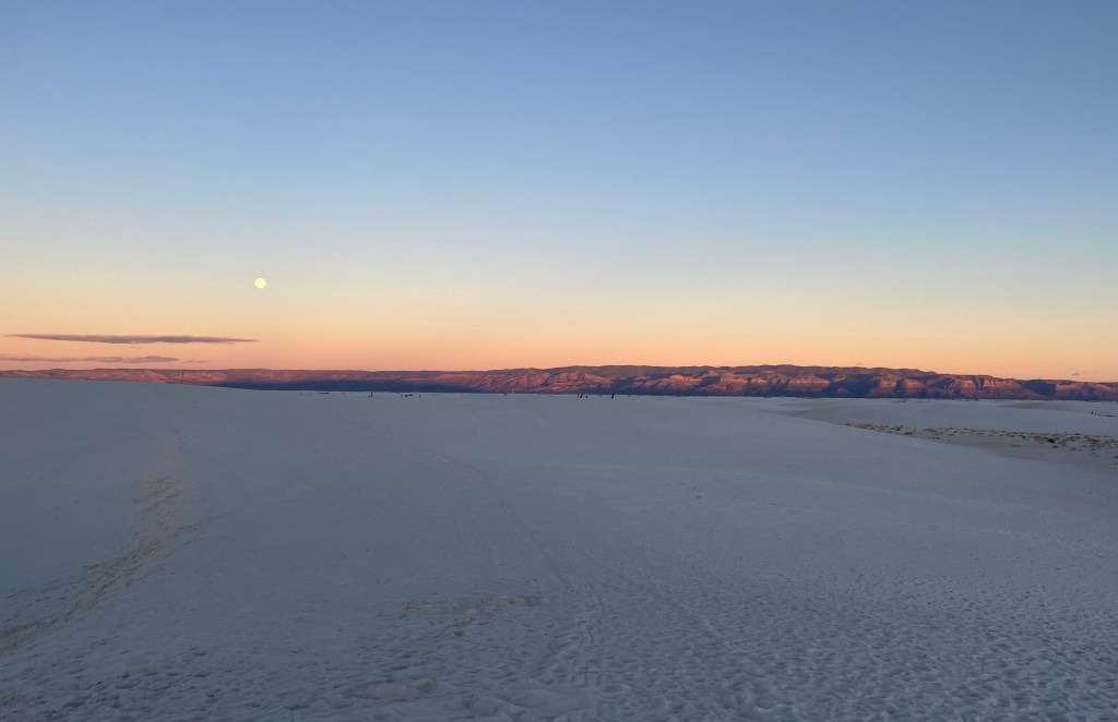 I want to note that these dunes are gypsum so they’re supposed to be white (like the ones at white sands) but I thought they were just regular sand color. The sunset over the dunes was nice.